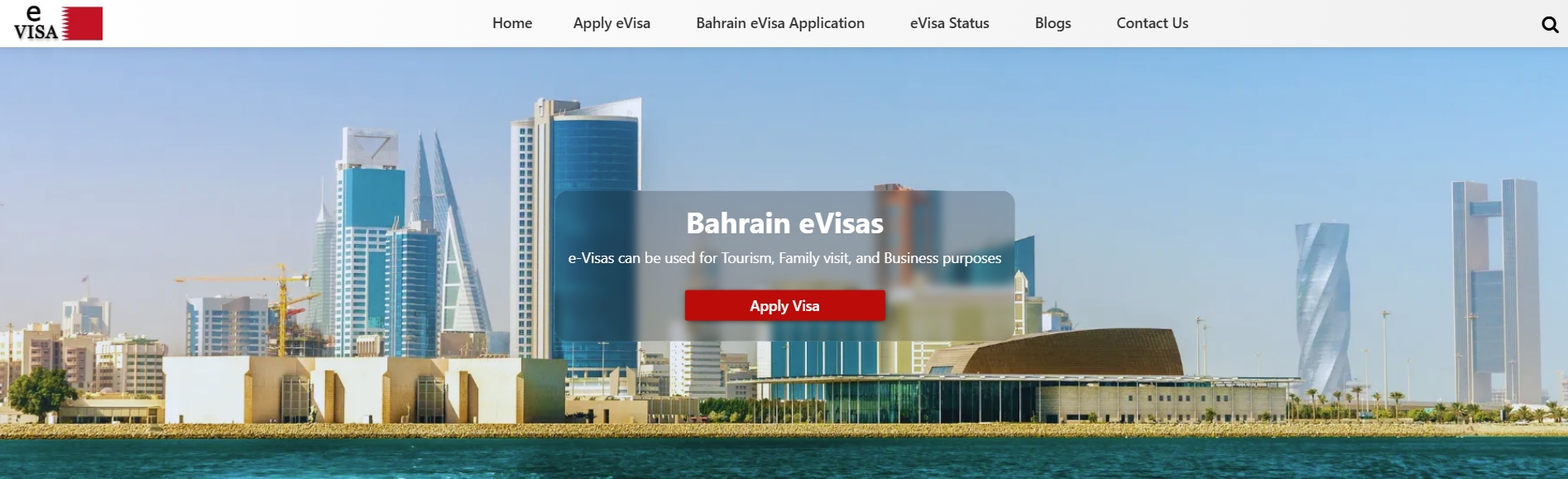 The site explains that the Bahrain eVisa can be used for tourism, family visits, or business trips.