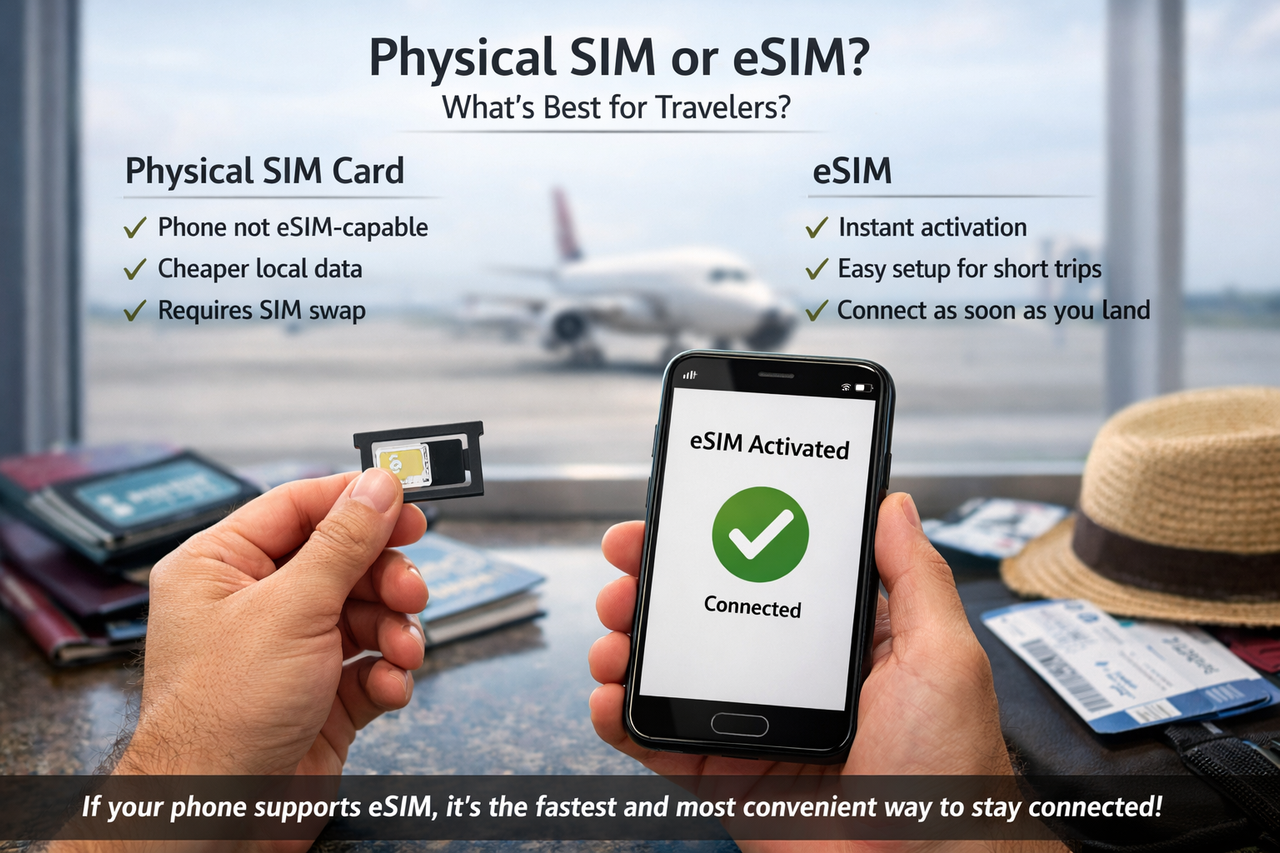 If your phone supports eSIM, this is often the fastest and most convenient option — especially if you want to stay connected from landing through your trip.