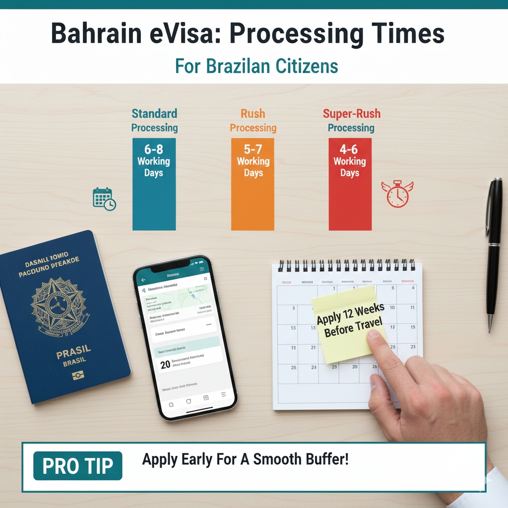 Processing times for a Bahrain eVisa depend on how quickly you need it and how complete your application is. According to recent sources: