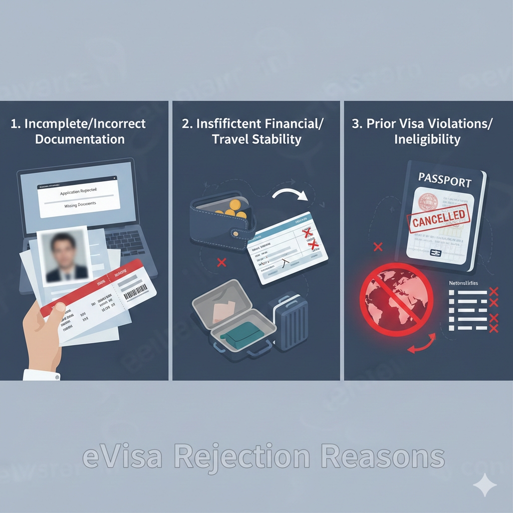 What are the three reasons for evisa rejection?