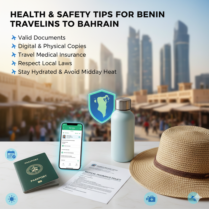 What Are the Health and Safety Considerations for Benin Citizens Traveling to Bahrain?