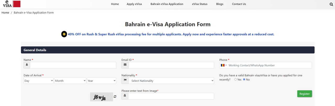 Applying for a Bahrain eVisa is generally straightforward and fully online — if all conditions are met. Here’s a step-by-step: