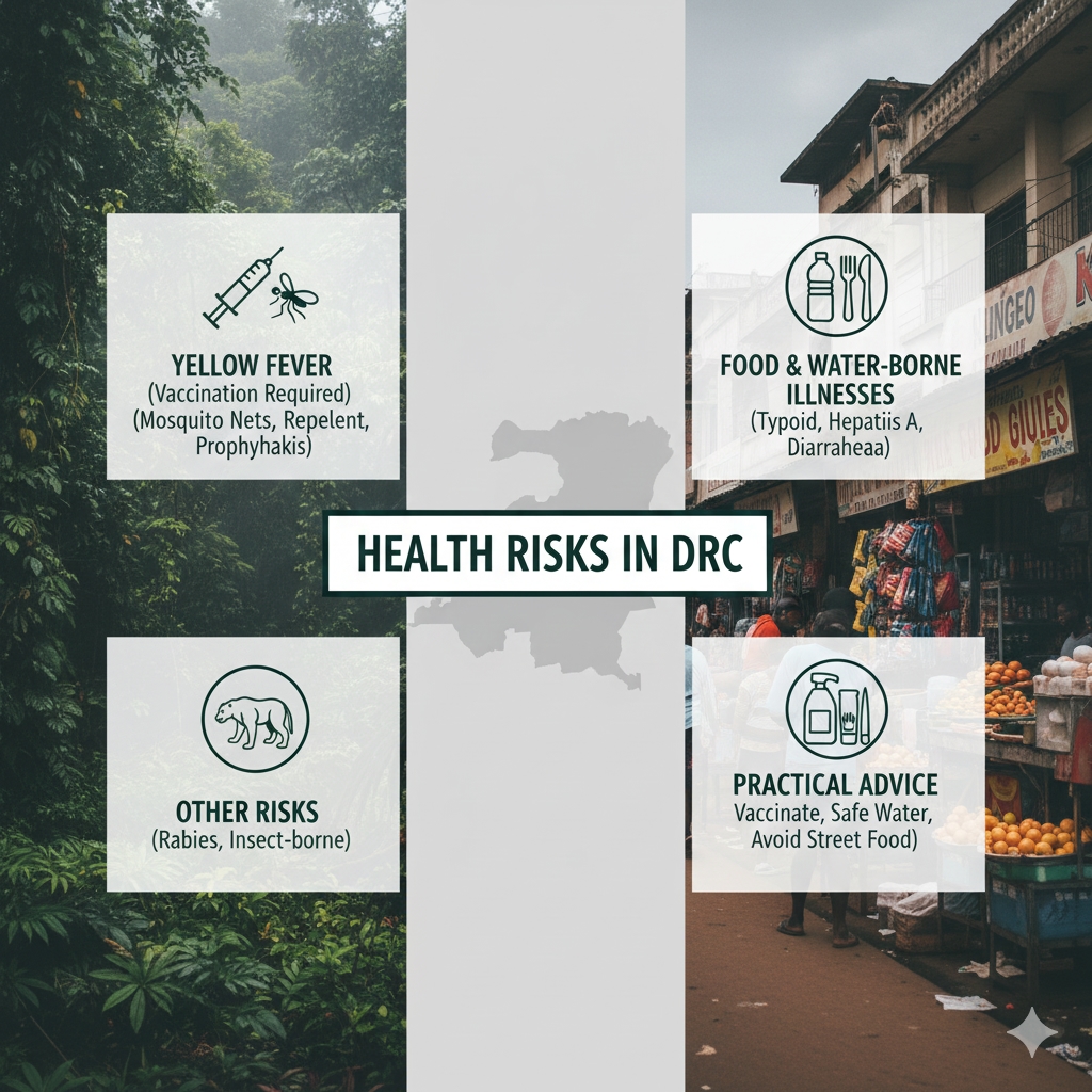 If you’re planning to travel to the DRC, being aware of some of the health risks is wise. According to health advisories: