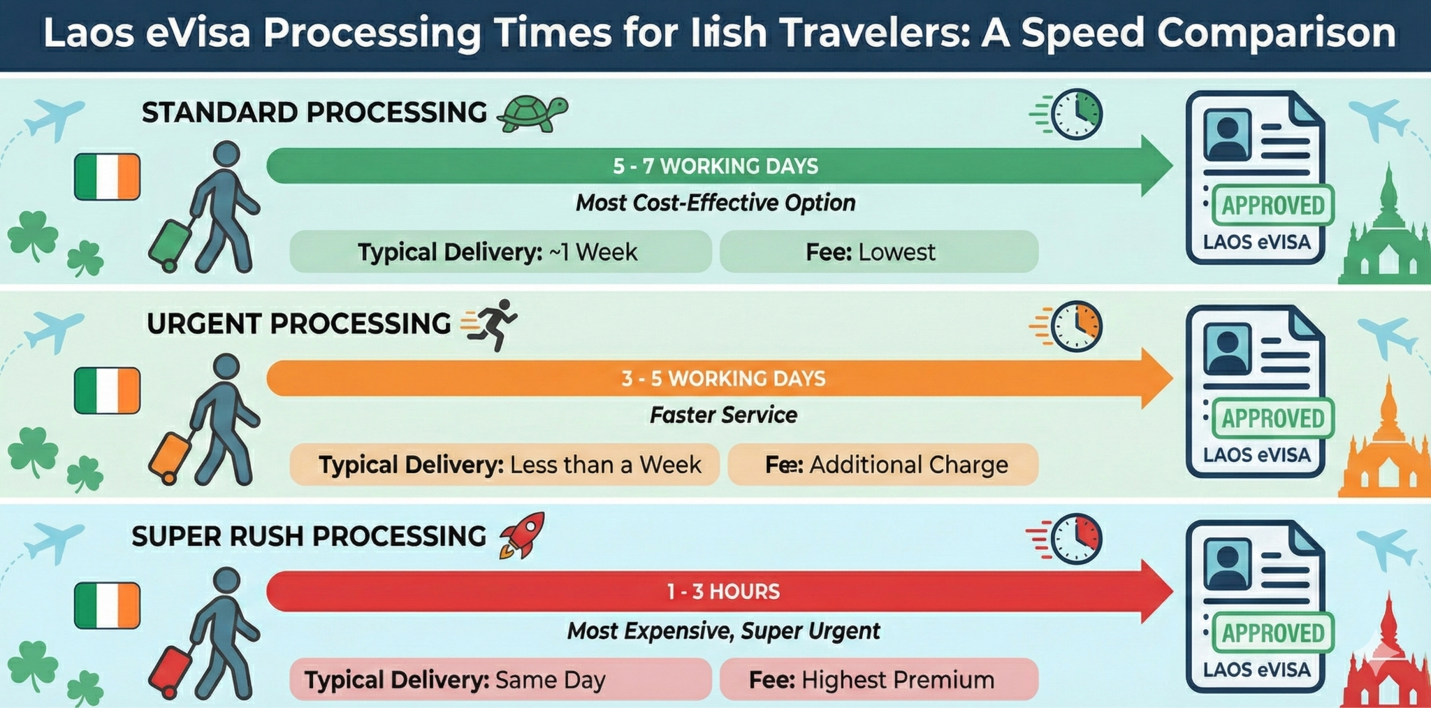 The Laos eVisa cost can vary, but Irish citizens can expect a standard processing charge when applying. The total amount is shown clearly before you submit your application.