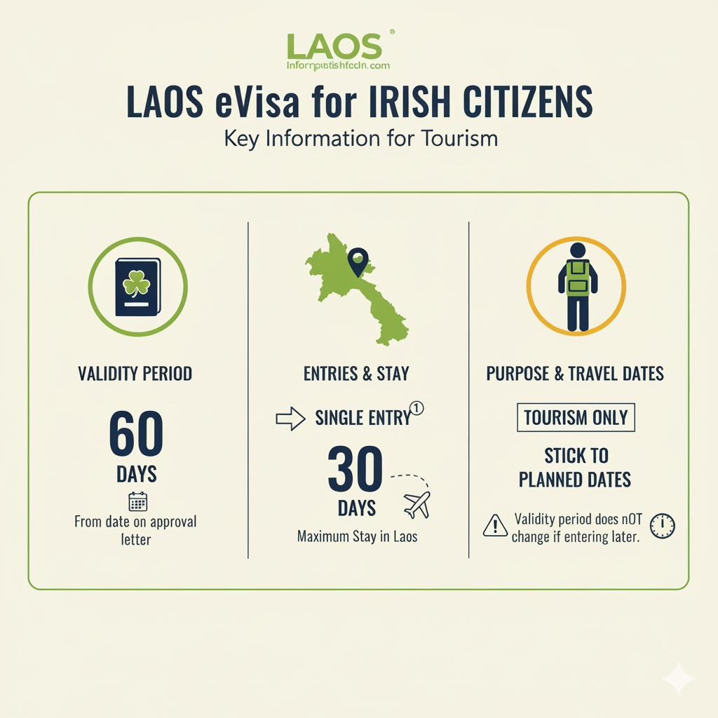 This guide is written in a clear, simple, and friendly way—perfect for anyone planning their first visit to Laos. Below, you’ll learn everything you need to know about the Laos eVisa for Irish Citizens, the application process, validity, processing time, extensions, and helpful travel tips.