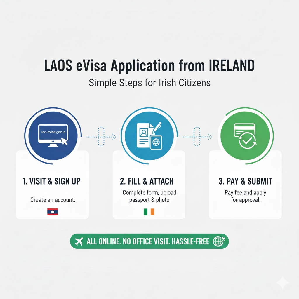 Applying for a Laos eVisa from Ireland is incredibly simple. Everything is done online, and the process usually takes only a few minutes.