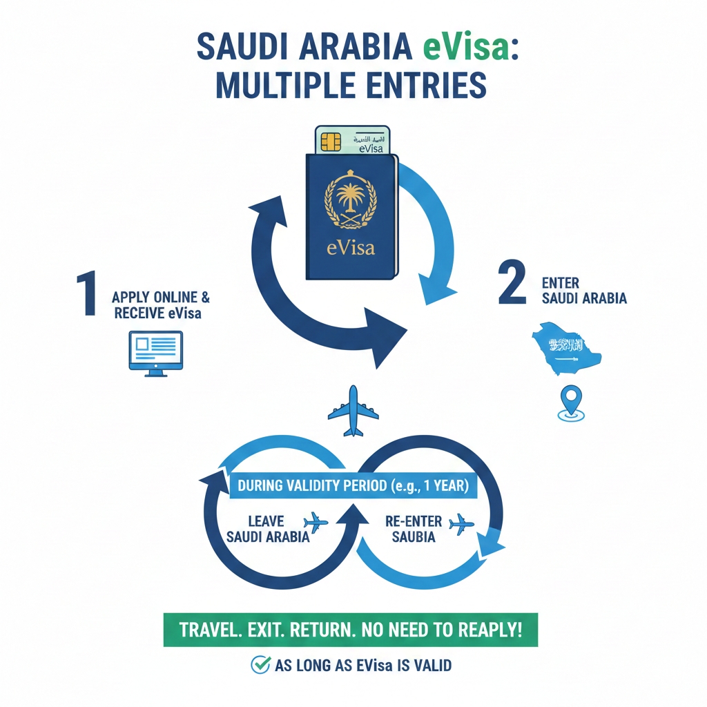 That means you can enter, leave, and re-enter Saudi Arabia during the validity period without needing to reapply every time (as long as the visa remains valid).